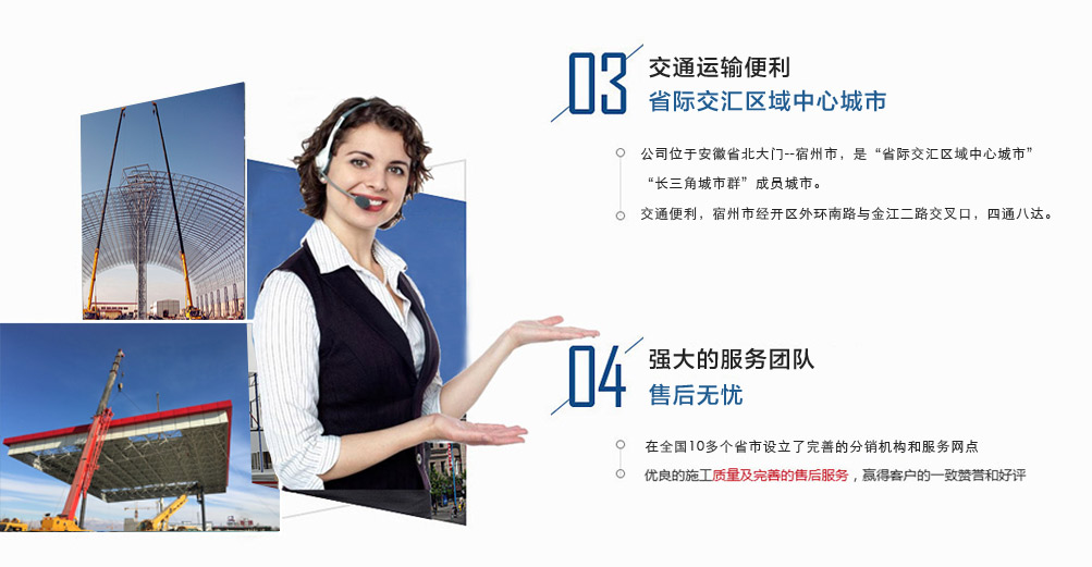 宿州市祥誠鋼結構科技有限公司位于宿州市經開區外環南路與金江二路交叉口北,公司是一家以建設產業化為目標,匯集大型鋼結構廠房、彩鋼活動房設計、制作、安裝施工一條龍服務的知名鋼結構公司。公司現有固定資產1000余萬元、流動資金近千萬元公司。現有員工40人,大專以上學歷30人,其中高級工程師1人、工程師2人、會計師1名。各工種持證上崗率100%。高效化的年青團隊為公司帶來了蓬勃發展的動力,全體員工以務實的態度,拼搏的精神,創造著企業的每一天。      公司組織結構嚴格按現代企業制度設計,管理機構設置合理,制度完善,各部門分工明確...